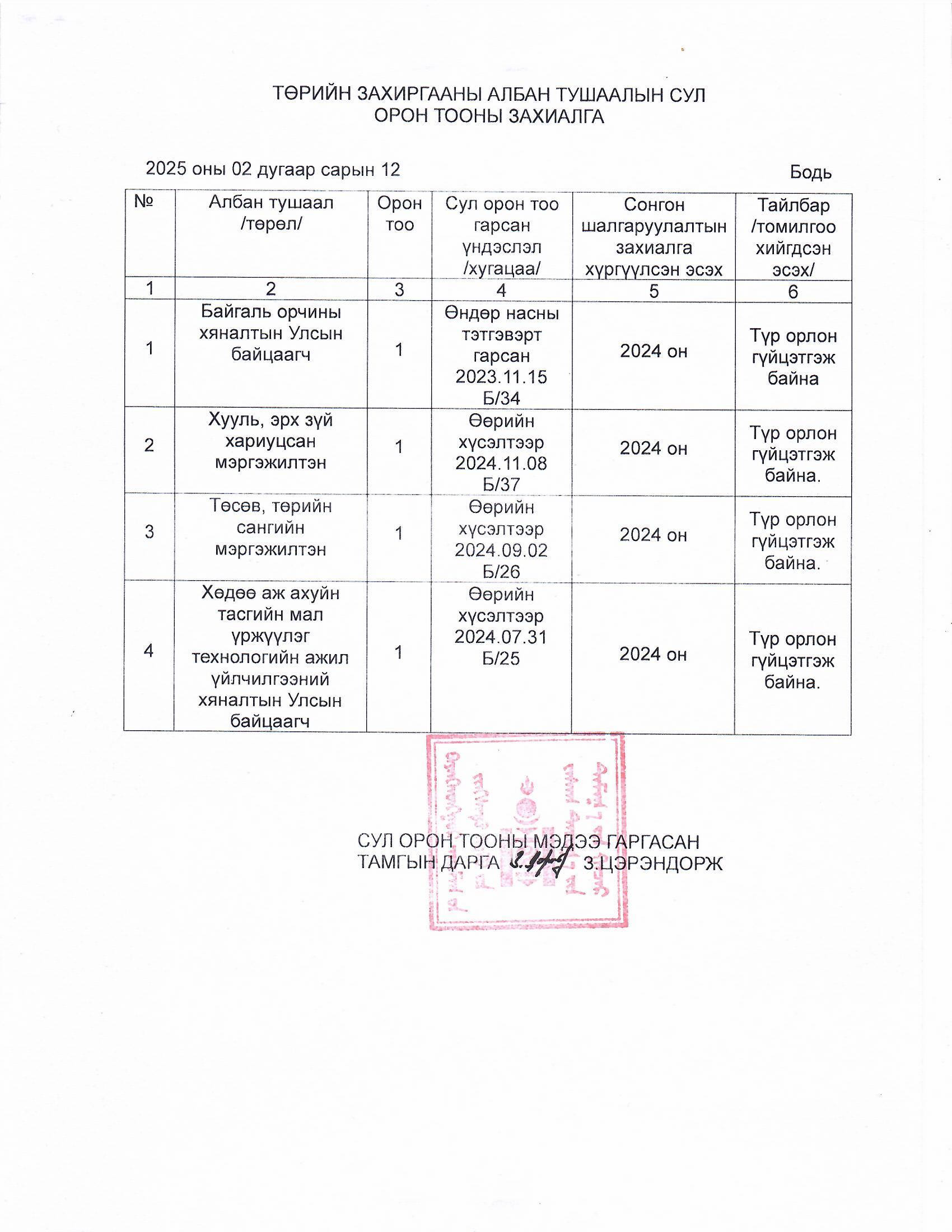 ЗДТГ-ын 2025 оны сул орон тоо